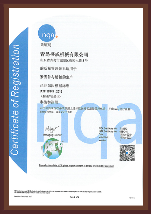 公司全體員工始終遵循"一流品質(zhì)服務(wù),持續(xù)改進(jìn)管理,滿足客戶需求"的質(zhì)量方針,和“鑄精品螺栓、創(chuàng)用戶首選”的經(jīng)營理念。