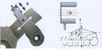 調節A:將提刀上的夾頭朝方向A移動來調節梭口的大小;