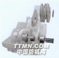 ① 2800型積極旋轉式電子多臂機適合于各類織機,織造各類小花紋織物。每片綜框均由一片寬度等于綜框節距的12mm偏心盤單元(1)進行控制。通過旋轉,安裝在內置軸承上的連桿和偏心裝置把旋轉運動轉化為綜框控制所需的直線運動。偏心盤外側的棘爪(2)將偏心盤與傳動盤(3)相連,實現綜框的提升運動。棘爪(2)的運動是由電子控制系統根據