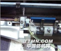 f.主噴嘴加裝緯紗夾(AGS),不引緯時用較小壓力的氣流在緯紗的垂直方向夾持住緯紗,防止彈力紗脫離主噴嘴(見圖 5—23);