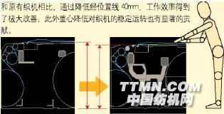 ③經位置線高度降低 40mm,既降低了織機重心,提高了穩定性,又便于擋車操作;