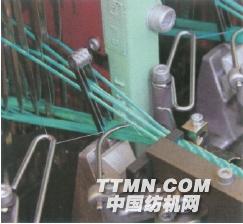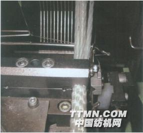 ③ VARITEX V5MJ 4/65 型提花織帶機(jī)條帶數(shù) 4 條,配 J192 型提花機(jī),384 針,適用織造彈性和非彈性經(jīng)提花條帶織物。展機(jī)配有加強(qiáng)收帶裝置,開口機(jī)構(gòu)為花鏈片控制 2 片綜框。