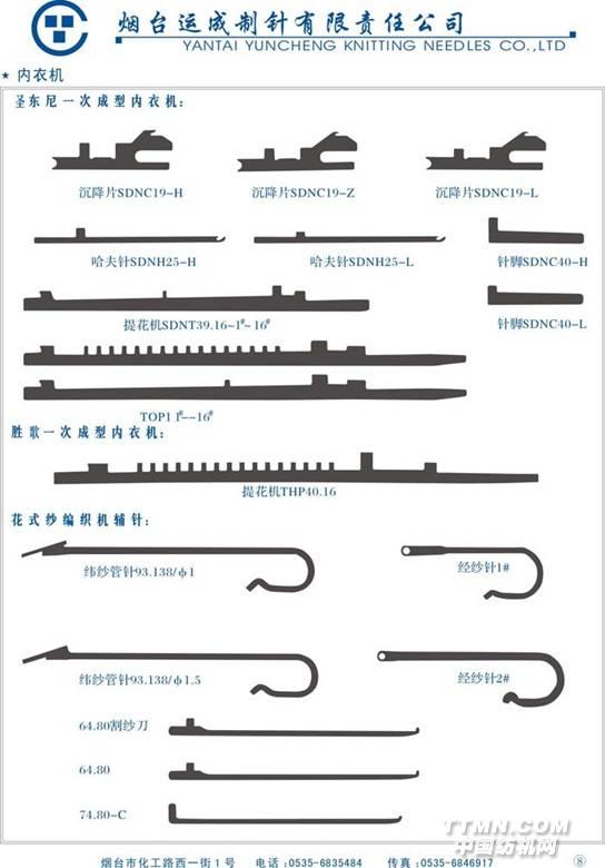 煙臺運成制針有限責任公司位于山東省煙臺市芝罘區,擁有六千多平方米的生產場地,是專門生產針織用針及針織配件的精密加工廠。主要產品有各類大圓機、橫機、毛皮機、襪機、手套機等鋼皮織針及各類輔助織針(沉降片、導針片、提花片、割刀)等。