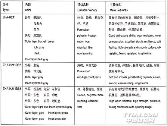 “經緯牌”紡織牽伸膠輥、膠圈集國內外先進的生產技術和工藝裝備精細之作而成。產品品種規(guī)格門類齊全,均可滿足棉、毛、麻、化纖等各種機型和紡織工藝的需要。自主研發(fā)的高強度、高彈性H211系列膠圈獲得江蘇省首界紡織技術創(chuàng)新獎和江蘇省高 新技術產品稱號,軟彈免處理膠輥獲得第三屆江蘇紡織技術創(chuàng)新獎。H1000型高速紡膠圈獲得第四屆江蘇紡織技術創(chuàng)新獎.
