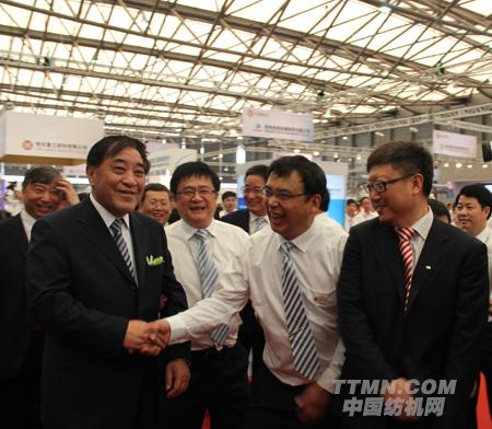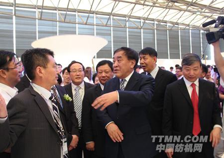 6月12日上午九點,展會一開幕,中國紡織工業聯合會會長王天凱率中國紡織工業聯合會副會長高勇、張延愷、徐文英、張莉和中國紡織機械器材工業協會理事長王樹田等領導一行來到W1館,在中國恒天集團董事長張杰、總裁劉海濤、副總裁葉茂新等人的陪同下,分別參觀了立信工業、Autefa Solutions、 恒天重工、經緯股份等企業的展臺。