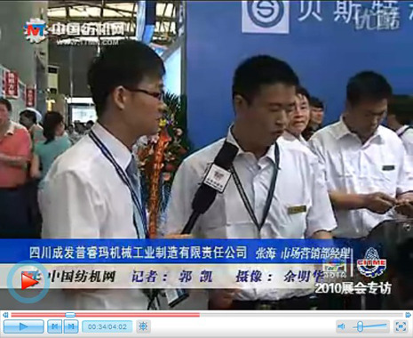 近日,四川成發普?,敊C械工業制造有限責任公司一行參加了2010年中國國際紡織機械展暨ITMA亞洲展覽會,在展會現場,記者有幸采訪到了公司市場營銷部張海經理。據悉,這次展會成發普睿瑪展出了多款產品:粗紗氣動搖架、氣動V形牽伸搖架、氣動平面牽伸搖架、QVX型氣動V形牽伸裝置、細紗氣動搖架。
