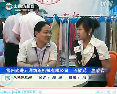 今年六月,2010年中國國際紡織機(jī)械展覽會暨ITMA亞洲展覽會在上海舉行。在展會現(xiàn)場,武進(jìn)五洋紡織機(jī)械有限公司董事長王敏其先生接受了記者的采訪。