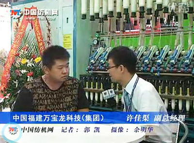 在本屆中國國際紡織機械展覽會暨ITMA亞洲展覽會的現場,中國紡機網記者很榮幸地采訪到萬寶龍科技的許佳渠副總經理。據介紹,此次展會,萬寶龍科技主要帶來了緊密紡細紗機和平網印花機。公司最早引進德國技術,并消化吸收,研制出自己獨特的產品,其中一款四羅拉緊密紡裝置格外引人注目。這款產品采用輸出羅拉與皮輥夾持網格圈積極傳動,在緊密紡負壓系統采用總風機、總風管,并配有濾網,防止短絨二次污染車間。此外,采用模塊化設計,6錠為一單元,便于管理。負壓分配系統配置也十分合理,各吸氣口氣流一致性好。公司對異性管吸口進行了優化設計,有利于須條集聚。同時,采用變頻技術在紡不同支數紗線時對負壓進行控制,網格圈張緊裝置張力一致性好,保證網格圈運行平穩。