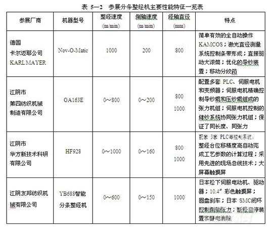 圖 5—1:3種類型整經(jīng)機(jī)適應(yīng)性比較