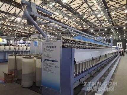 羅拉牽伸由 1 臺電機傳動,錠翼與筒管通過齒形帶直接傳動,每 6 個錠翼和錠子各由 1 臺電機傳動(該結(jié)構(gòu)首次展出)。