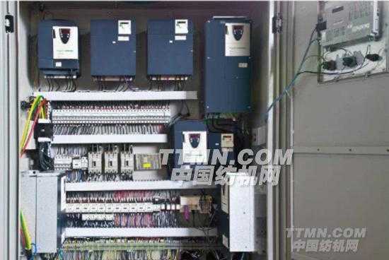 控制系統中包含了8臺變頻器,用于控制電機傳動、分梳輥傳動、引紗、喂棉、橫動和工藝風機,保證了人機界面跟每個紡紗單元的通訊控制。