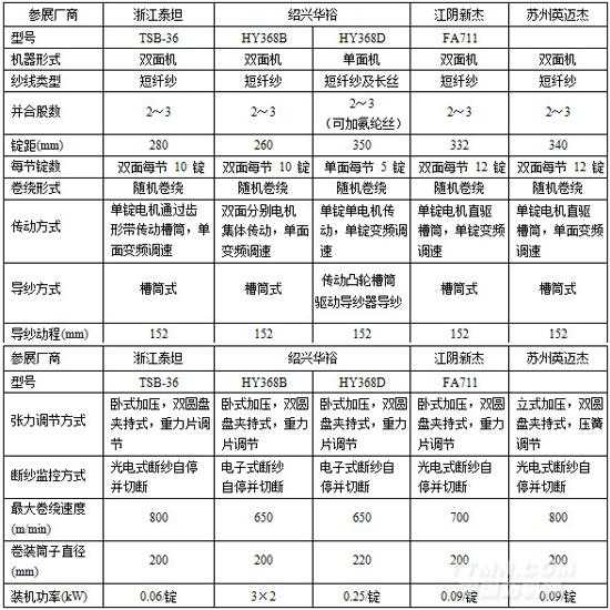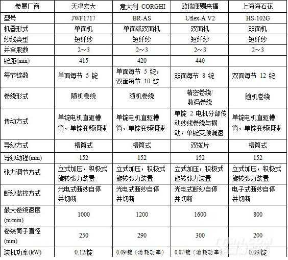1.參展并紗機(jī)的主要性能及特點(diǎn)參展的并紗機(jī)主要技術(shù)參數(shù)及技術(shù)特征見下表