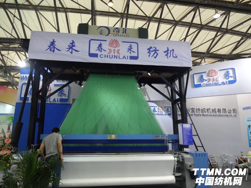 據悉,該機公稱筘幅調節范圍為40cm,特殊要求可達80cm,可滿足不同織物的生產工藝要求。為了提高織物質量,將短纖維紗線線密度控制在5-500tex,而長纖維1.7-500tex。采用微電腦控制系統,不僅提高產品的自動化程度,還方便人員的操作與管理,大大提高了其生產效率。在現場我們看到設備正有條不紊的運轉中,從開口、引緯、打緯、送經到卷取無一不是完美的展示。不少客商看完演示后,豎起大拇指嘖嘖稱贊。