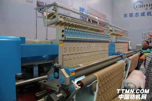 2014年紡機展上,東莞志成為在展會中脫穎而出,攜CS64電腦絎縫機和CS94電腦絎縫機等精品亮相。其中以CS64電腦絎縫機最受觀眾關注。工作人員告訴我們,該產品采用簡單快捷的花樣編輯軟件,可在短時間內根據客戶要求完成花樣編輯。新一代上布裝置附加上布小電機,確保布隨時處于緊繃狀態使絎縫效果更佳。360度花樣絎縫,電腦存儲有三百種花形供用戶選擇。而當絎縫厚薄不同面料時,壓板可整體升級,操作方便。現場,我們看到不少客商在其展臺參觀,其中部分外商正同東莞志成工作人員進行圓桌洽談。