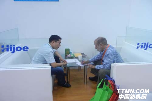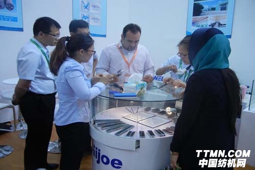 展會上,我們看到此次維爾展出的系列針布產品個個做工精良,特別是在燈光的映襯下更顯得熠熠生輝。工作人員告訴我們,該類針布均采用了先進的工藝和優質的選材,產品不僅質量較以往有很大提升,而且使用壽命也大大延長。現場不少外商在了解產品的詳細參數后,紛紛表示了購買意向。其中部分客商當場就與威爾簽訂了合作事宜。