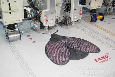 3. 鎖式特繡機與平繡混合組成混合特繡機,在同一臺機上既能刺繡鎖式特繡機的盤帶、鋸齒、卷繞,又能刺繡平繡及金片。