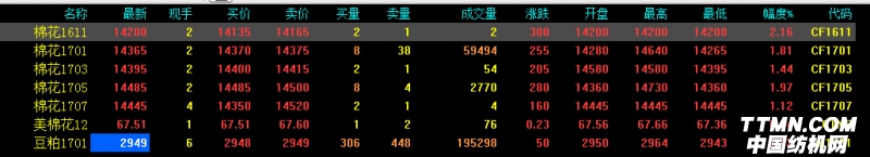 9月19日鄭棉期貨最新開盤行情