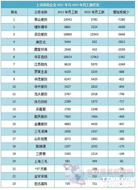 在上市企業利潤下跌、甚至虧損的背景下;作為勞動密集型產業典型代表的紡織業,開啟了裁員模式。據統計,2015年在A股上市的36家紡織企業中,有21家在裁員,裁員企業占比接近六成;且這樣的裁員潮自2013年就已開始。