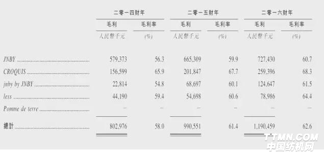 圖為集團旗下各品牌的毛利以及毛利率數據