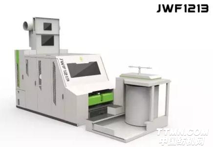 2015年青島宏大針對滌綸、粘膠、差別化纖維等化纖品種,成功開發了JWF1211(G)專用梳棉機。該產品是在工藝技術成熟、市場廣泛認可的JWF1211型高產梳棉機的基礎上,顛覆傳統梳棉機梳理理念,將回轉蓋板系統和固定蓋板系統進行全新設計,配以特殊設計的專用固定蓋板和棉網清潔系統,采用專用的速度、隔距、牽伸等工藝配置,在保證質量指標的情況下,可以實現高產,并明顯降低落棉率,降低了投資成本,降低了紡紗廠梳棉機的維護成本,極大減少了保全人員的維修、保養工作量,是一款性價比很高的專用梳棉機。