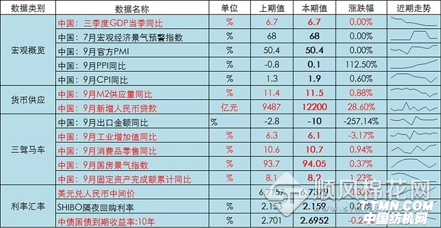 同時(shí),9月經(jīng)濟(jì)數(shù)據(jù)顯示國(guó)內(nèi)商品仍存在通脹的趨勢(shì)。CPI同比上漲9%(前值1.3%),較上月大幅回升0.6個(gè)百分點(diǎn),高于市場(chǎng)預(yù)期1.7%。CPI平穩(wěn)回升,仍處“1”時(shí)代,但通縮預(yù)期漸行漸遠(yuǎn)。PPI時(shí)隔54個(gè)月后重新增速轉(zhuǎn)正,表明大宗商品有走出熊市的強(qiáng)烈信號(hào);但出口大幅低于預(yù)期,表明外部經(jīng)濟(jì)環(huán)境并不理想,仍需激發(fā)經(jīng)濟(jì)的內(nèi)生動(dòng)力。GDP增速也維持在6.7%,市場(chǎng)猜測(cè)經(jīng)濟(jì)處于“L型”底部,所以整體宏觀對(duì)商品市場(chǎng)的影響中性偏多,當(dāng)其他商品均出現(xiàn)上漲行情時(shí),棉花出現(xiàn)深調(diào)幾率不大。