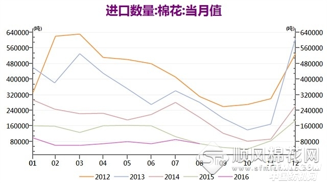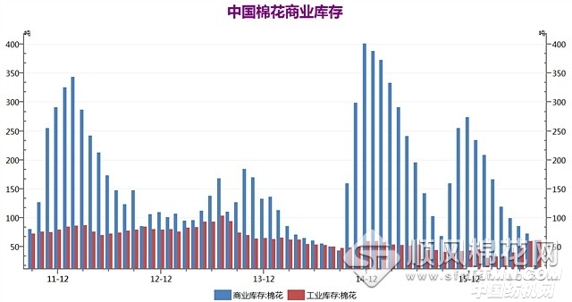 首先,根據(jù)中國(guó)棉花信息網(wǎng)最新調(diào)查顯示,2016年全國(guó)棉花種植面積預(yù)計(jì)為4028萬(wàn)畝,減幅10%。分地區(qū)來(lái)看,新疆植棉面積3006萬(wàn)畝,減幅6%;內(nèi)地植棉棉價(jià)1022萬(wàn)畝,減少22%。2016/17年度國(guó)內(nèi)棉花產(chǎn)量預(yù)計(jì)在447萬(wàn)噸左右,其中新疆總產(chǎn)367萬(wàn)噸,內(nèi)地總產(chǎn)80萬(wàn)噸,整體棉花產(chǎn)量繼續(xù)下降。其次,由于進(jìn)口棉配額和滑準(zhǔn)稅制度的限制,2015/16年度我國(guó)進(jìn)口棉花量大幅下降,數(shù)據(jù)顯示2016年1-8月我國(guó)累計(jì)進(jìn)口棉花60萬(wàn)噸,同比減少51萬(wàn)噸,減幅85%。我國(guó)進(jìn)口關(guān)稅配額為89.4萬(wàn)噸,對(duì)此在第四季度企業(yè)將盡力用完手中棉花配額。但從今年國(guó)內(nèi)棉市形勢(shì)來(lái)看,國(guó)家仍致力于去庫(kù)存,目前已確定進(jìn)口棉花數(shù)量維持89.4萬(wàn)左右。另外,由于今年市場(chǎng)對(duì)后市缺乏信心,商業(yè)庫(kù)存和工業(yè)庫(kù)存都維持低位,最新數(shù)據(jù)顯示,商業(yè)庫(kù)存為61.11萬(wàn)噸,工業(yè)庫(kù)存為61.26萬(wàn)噸。最后,2016年度棉花拋儲(chǔ)已結(jié)束,拋儲(chǔ)總量在263萬(wàn)噸左右,紡織企業(yè)接貨熱情明顯。按照前期國(guó)家發(fā)改委信息,國(guó)儲(chǔ)庫(kù)中有800萬(wàn)噸左右,已確定2017年3月份將再次啟動(dòng)拋儲(chǔ),拋儲(chǔ)數(shù)量可能不會(huì)小于今年,也即250萬(wàn)噸,同時(shí)仍采用“包包檢”的檢疫制度,但在3月份前準(zhǔn)備出不少于100萬(wàn)噸的可供掛牌資源量。所以總體看,新年度棉花供給仍維持549.4萬(wàn)噸看法。