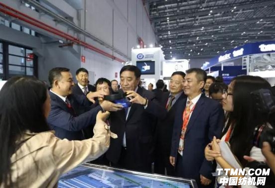 (中國紡織工業(yè)聯(lián)合會黨委書記王天凱現(xiàn)場體驗網(wǎng)上紡機展)