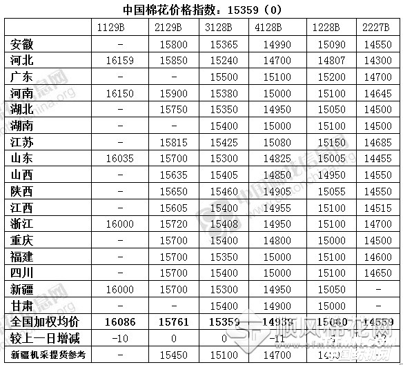 中國(guó)棉花價(jià)格指數(shù)(CC Index)及分省到廠價(jià)(10.24)