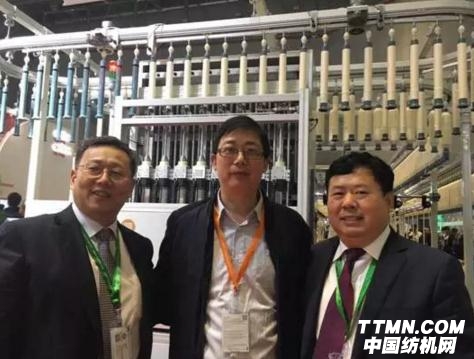 (江蘇大生集團副總經理趙志華(中)和經緯紡機副總經理史建平(右)、天津宏大總經理庫冠群(左)在中紡機展臺)