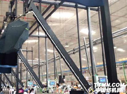 生產(chǎn)流水線縫制環(huán)節(jié)完成之后,檢驗人員將檢驗合格的服裝掛上特制衣架,待熨燙服裝將被自動輸送到“神奇隧道”,完成自動“整形”,而后自動分揀到指定位置,進行包裝……這是又一套由上海威士機械有限公司自主開發(fā)設(shè)計的運動服智能化無人后整理系統(tǒng)投入使用。