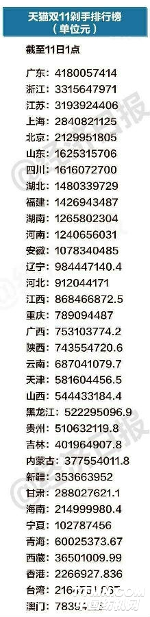 其中,廣東、浙江、江蘇、上海和北京的市民最任性,交易額排名前五!相比之下,重慶市民比較冷靜和克制,1小時買了7.9億,位居全國第16位。各位剁手黨們,守著一晚上手機奮戰了多久了?雙11你又貢獻了多少呢?