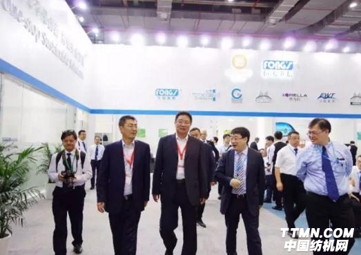 (中國紡織工業(yè)聯(lián)合會(huì)會(huì)長孫瑞哲先生一行親臨恒天立信展臺參觀)