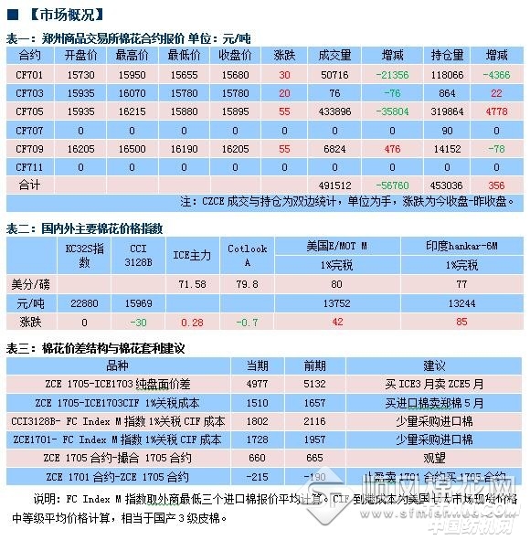 鄭棉價格日內沖高回落 多頭信心減弱(12.1)