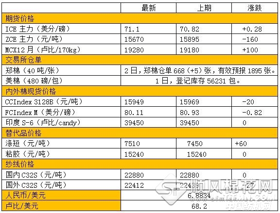 國內現貨滯漲下滑。國內棉花平均現貨成交價下滑20元報14945元。印度出口事件仍未有定論,2日印度棉價與1日持平。