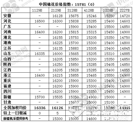 中國棉花價格指數(CC Index)及分省到廠價(1.17)