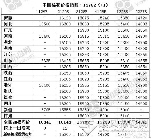 中國棉花價格指數(CC Index)及分省到廠價(1.19)