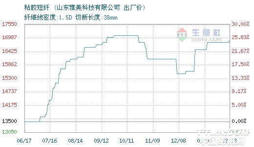 02月03日山東雅美科技有限公司關于粘膠短纖的報價為16900元/噸。粘膠短纖的出產地為山東雅美;倉儲地為山東省;粘膠短纖的屬性:纖維線密度:1.5D;切斷長度:38mm。該報價有效期為7天。