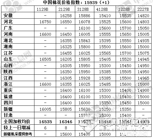中國棉花價格指數(shù)(CC Index)及分省到廠價(2.6)
