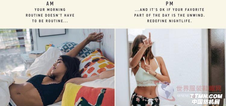 “我們的顧客將會享受到又一系列有趣、舒適的胸罩、內褲和睡衣,”Hollister的品牌主席Kristin Scott說,“我們把Gilly設計得又輕薄又舒服?!边@就意味著薄型胸罩Bralette又將占據這個品牌的主流。從網站上看也確實如此,帶可脫卸襯墊的、蕾絲的、帶袖的、高領的、多條吊帶的Bralatte比比皆是。網站里只有一款聚攏型胸罩,而且還不在實體店出售。