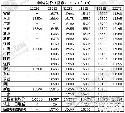 中國棉花價(jià)格指數(shù)(CC Index)及分省到廠價(jià)(2.20)