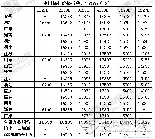 中國棉花價格指數(CC Index)及分省到廠價(2.22)