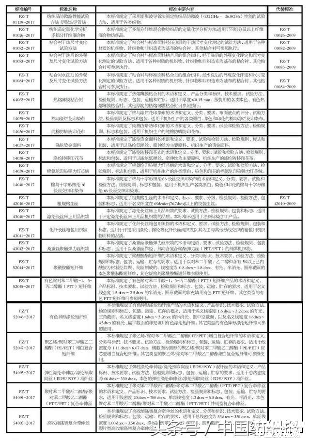 46項紡織行業(yè)標準編號、名稱、主要內(nèi)容一覽表(1)