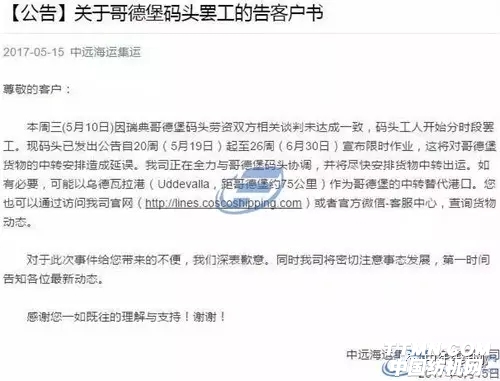 據外媒報道,因為碼頭工人和APM運營商之間的沖突越來越嚴重,瑞典哥德堡港APM碼頭工人將于5月19日-6月30日期間罷工。據相關負責人稱,工人和運營商之間的矛盾已經嚴重影響了港口的正常運作,如若在未來一段日子里還不解決,哥德堡港將有失去北歐交通樞紐港地位的風險,一些船公司的船舶可能會不再掛靠哥德堡港。