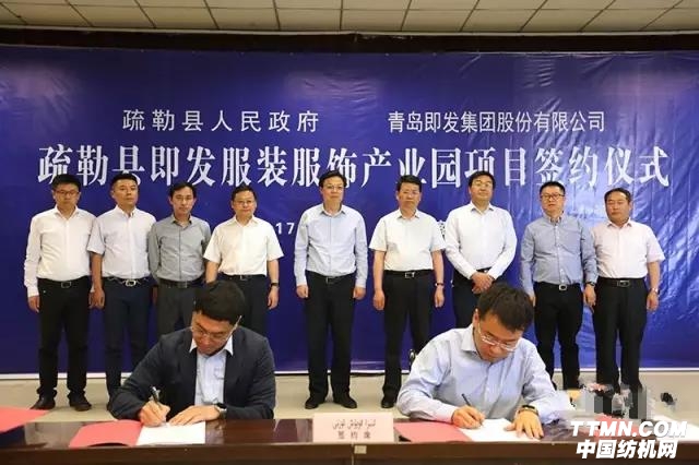 5月12日,新疆喀什地區疏勒縣即發服裝服飾產業園項目舉行簽約儀式。