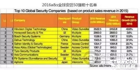 下圖是在《安全與自動化》公布的“全球安防50強”排名。