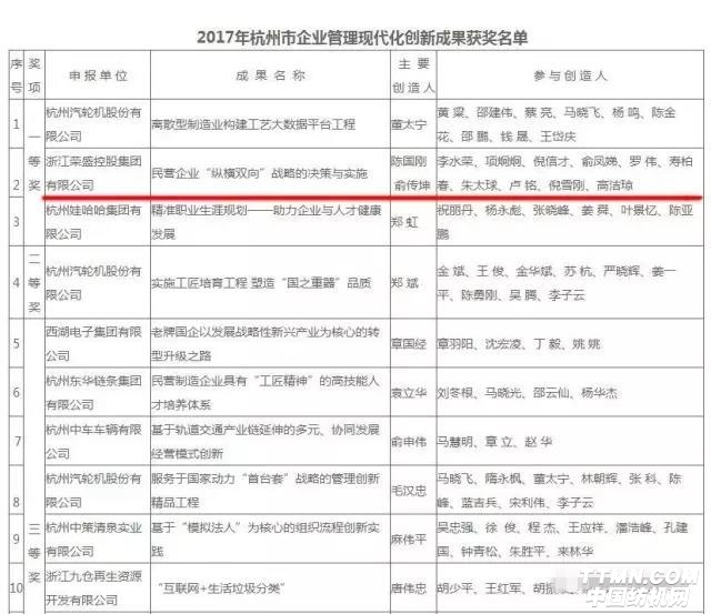 據悉,在杭州市企業聯合會的組織下,此次評選共收到企業創新成果21項,經杭州市企業管理現代化創新成果專家評審小組評審,最終共有17項管理成果獲獎,包括3項一等獎、5項二等獎及9項三等獎。