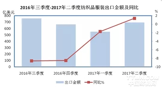 對歐盟 出口降幅逐季縮小,服裝出口量保持增長