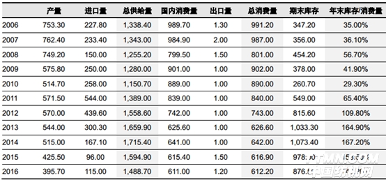2006-2016 年中國(guó)棉花供需平衡表(單位:萬(wàn)噸)