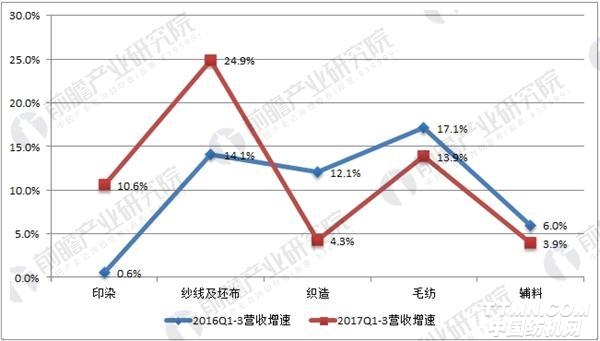 紡織制造細分行業營收增速對比