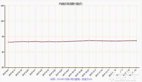 據疊石橋家紡指數監測數據顯示:2017年12月第三周家紡制成品內銷價格指數收于93.65點,環比上漲0.03%。小件套本周收于97.14點,環比上漲0.04%;大件套本周收于101.15點,環比上漲0.03%;被套本周收于93.97點,環比上漲0.02%;冬被芯本周收于101.72點,環比上漲0.06%;毛毯本周收于94.41點,環比下跌0.02%。
